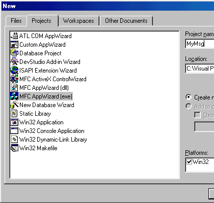 Выберем там MFC AppWizard(exe), это значит вы хотите